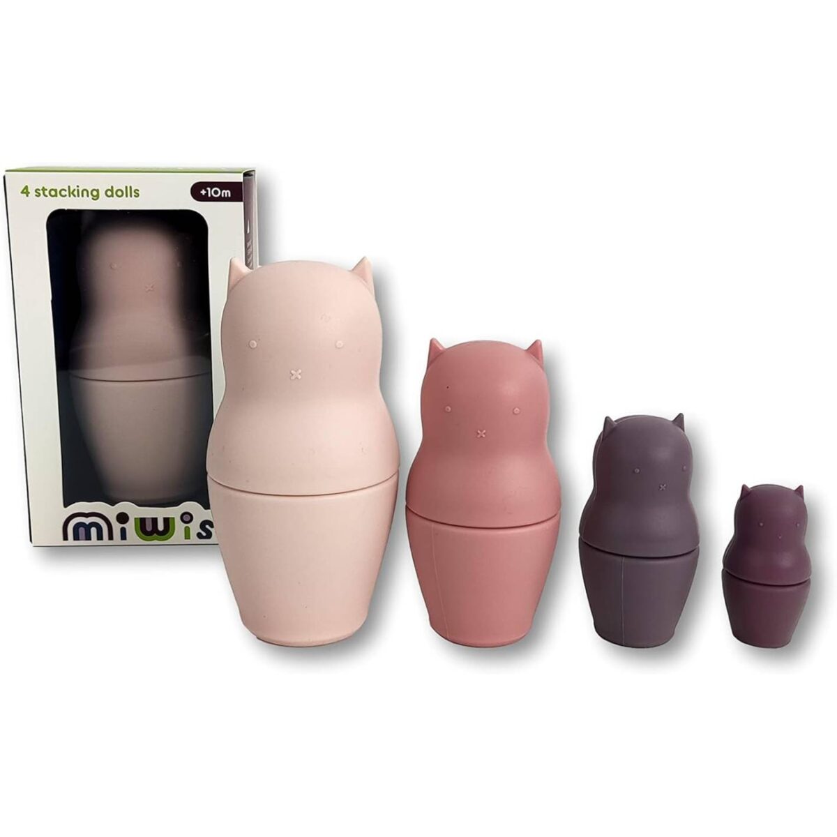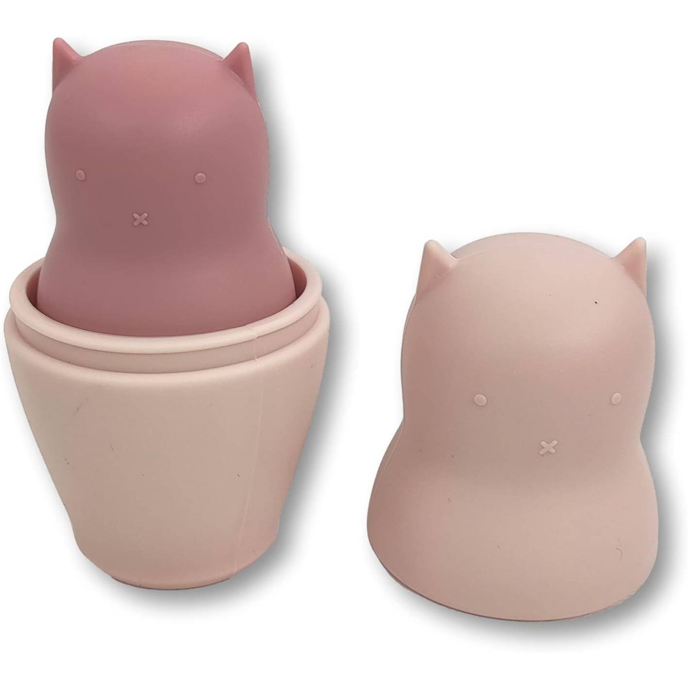 סט בבושקות חתול מתוקות מסיליקון רך ובטיחותי – שילוב מנצח של משחק, עיצוב ועמידות. ארבעה חתולים מוערמים (nesting dolls) בצבעים טבעיים ורכים, שמהווים גם צעצוע מוטורי מרגיע, גם קישוט לחדר הילדים, וגם משחק מושלם לאמבטיה!