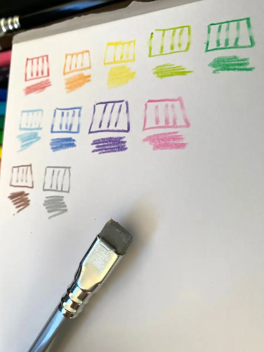 המארז כולל 12 עפרונות צבעוניים באיכות פרימיום, עשויים עץ ארז קטורת אמיתי, עם ליבה שעוותית יפנית רכה ועמוקה – שמציירת ברכות, מתמזגת, ונראית מעולה על כל משטח. לכל עיפרון יש גוף משושה בעיצוב יוקרתי, עם מחק ייחודי מבוסס חול – שמצליח למחוק צבע (ממש ככה!)
