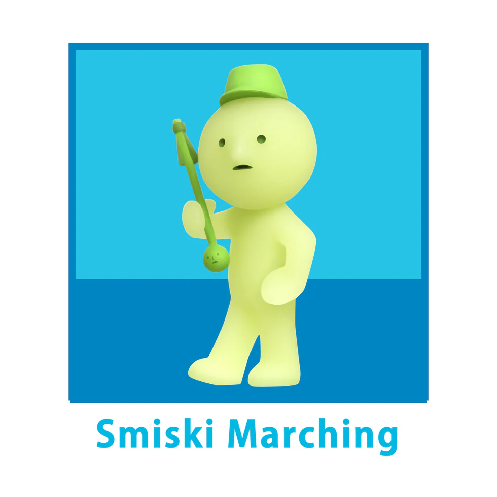סמיסקי מעודד בהתלהבות עם מגפון, סמיסקי במצעד, סמיסקי מתופף, סמיסקי נאמן תמיד לצידך, סמיסקי רוקד עם פונפונים וסמיסקי קטנטנים מעודדים עם פונפונים.