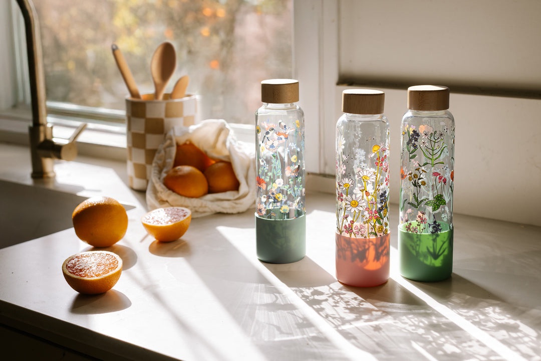 הבקבוק עשוי זכוכית בורוסיליקט – זכוכית איכותית, קלה ועמידה יותר מזכוכית רגילה. הוא נסגר בהברגה באמצעות מכסה עץ בהיר ומגיע עם שרוול סיליקון תחתון, המספק יציבות והגנה נוספת בעת הנחת הבקבוק על משטח.