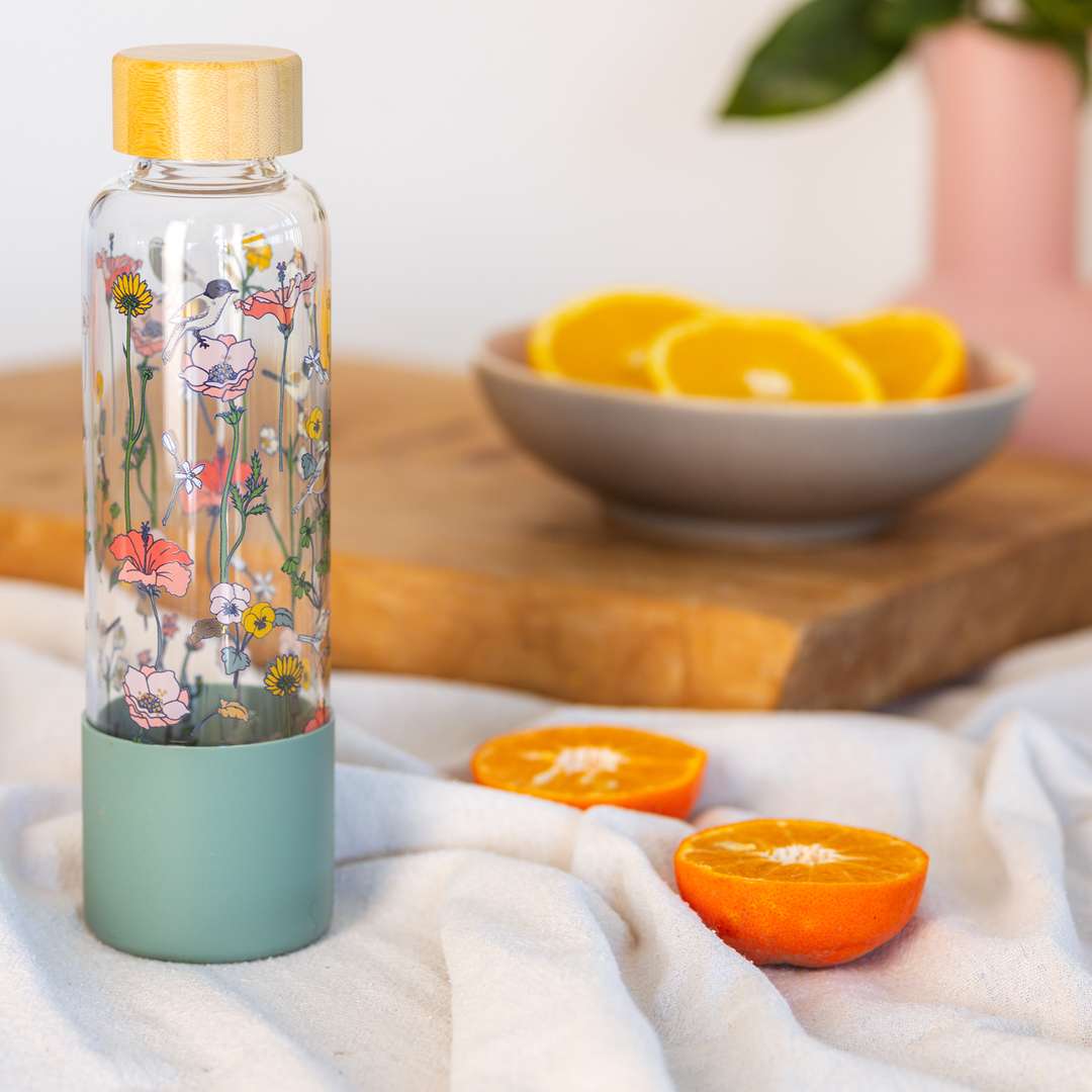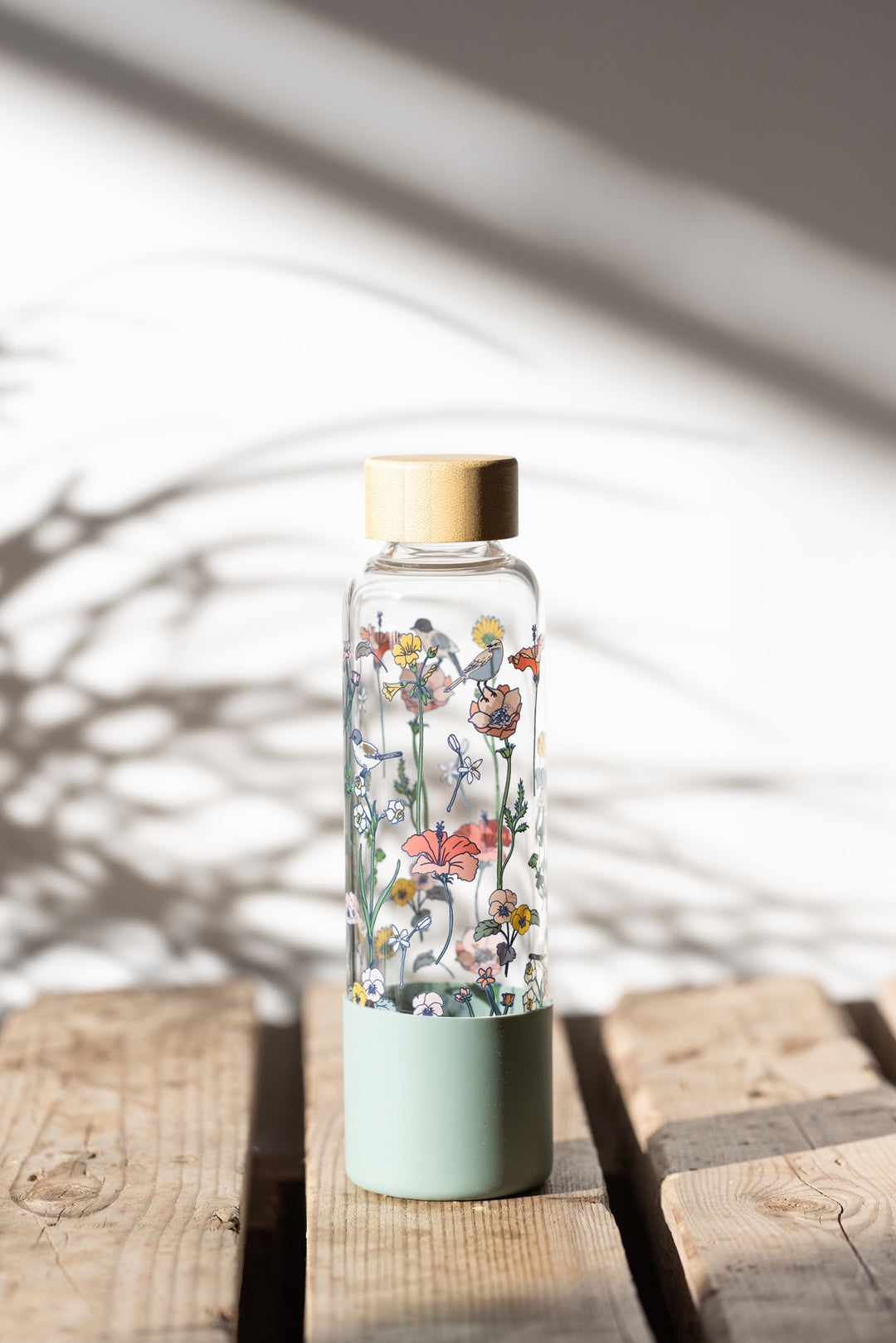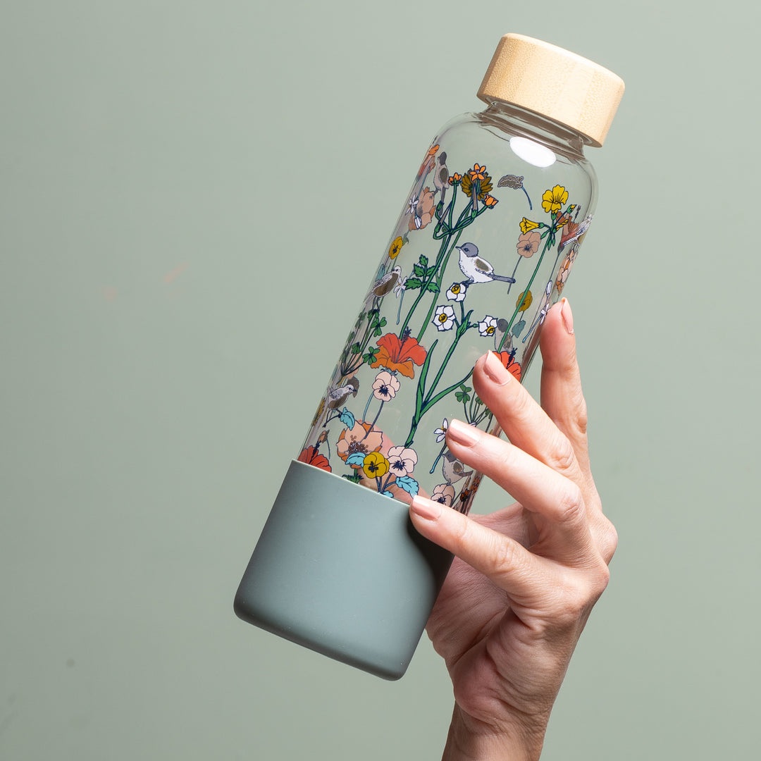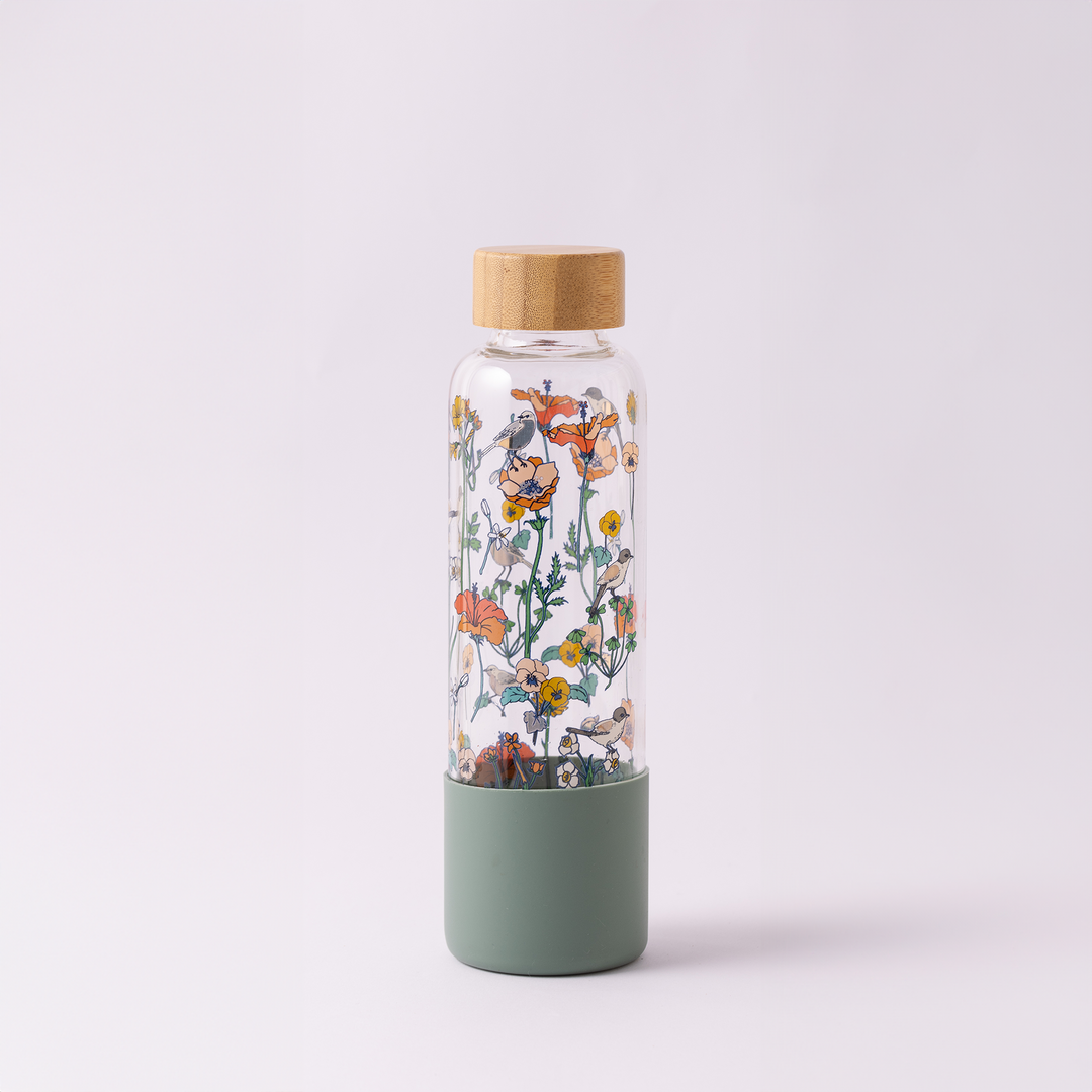 בקבוק שתייה מעוצב עם איורים מקוריים של ציפורים וצמחי בר, בשילוב נגיעות פויל מוזהב עדינות. העיצוב שייך לקולקציה המקומית של סטודיו יולטה, בהשראת הטבע הארצישראלי – עולם של ציפורים, פרחים וצמחייה שמזכירים רגעים קטנים מנוף הילדות שלנו.