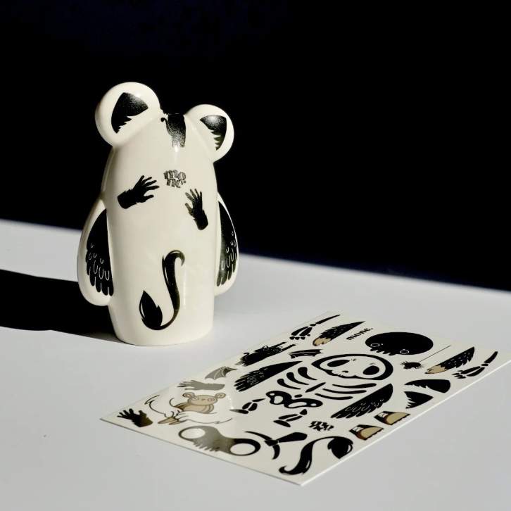 MONC “רוח חלל” מעוטר קעקוקעים שנוצרו על ידי האמנית הדס חימוביץ’ במיוחד עבור המותג.