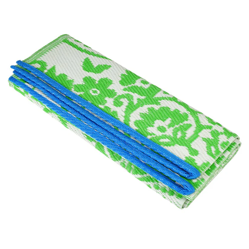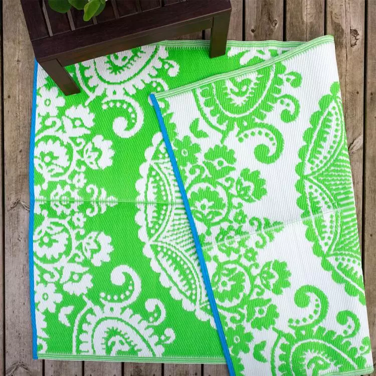 מחצלת ירוקה עם הדפס בהשראת עיצוב הודי מסורתי ובעבודת יד.