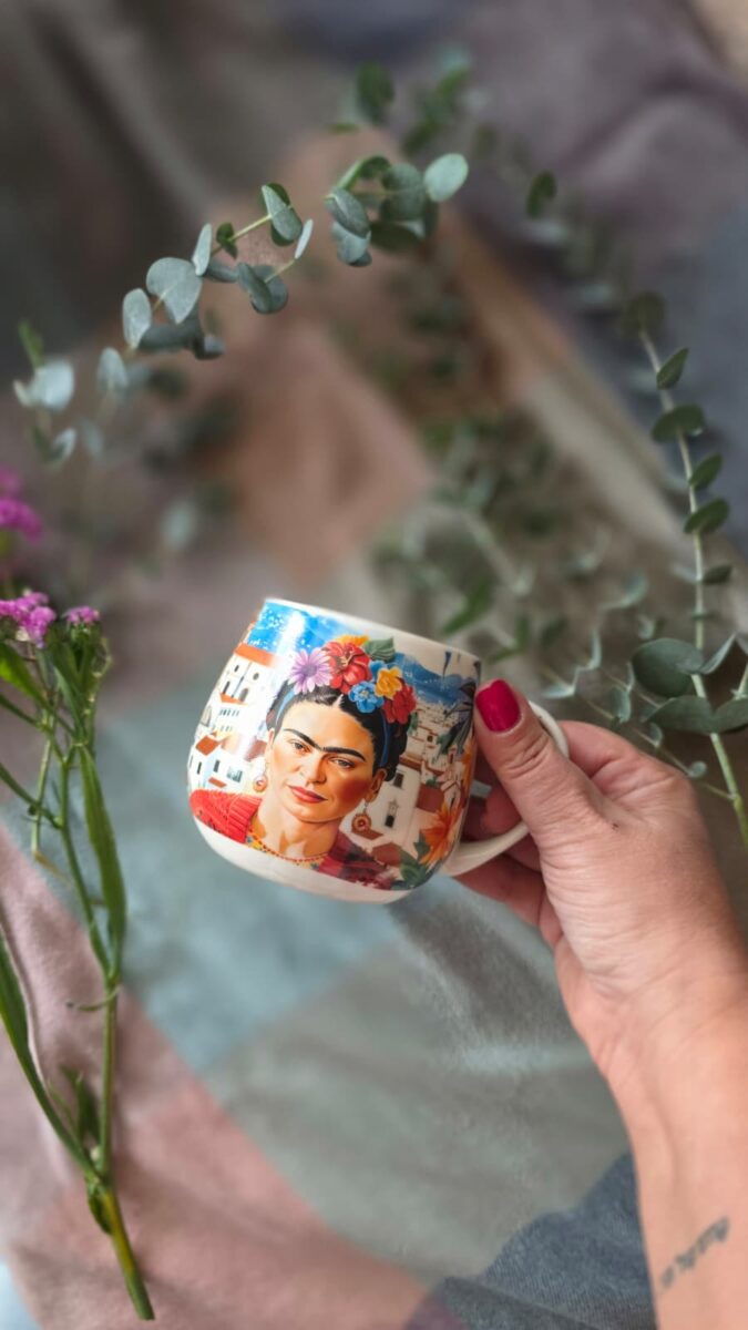 ספל פורצלן גדול בעיצוב מחווה לאייקון נשי נועז ובלתי נשכח – פרידה קאלו.
