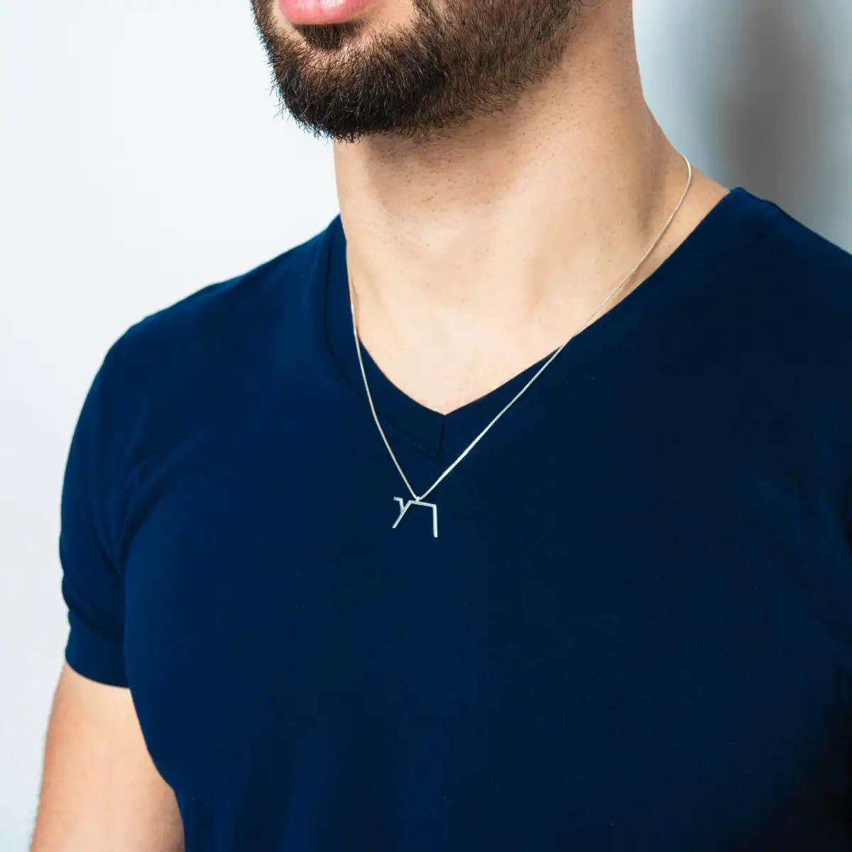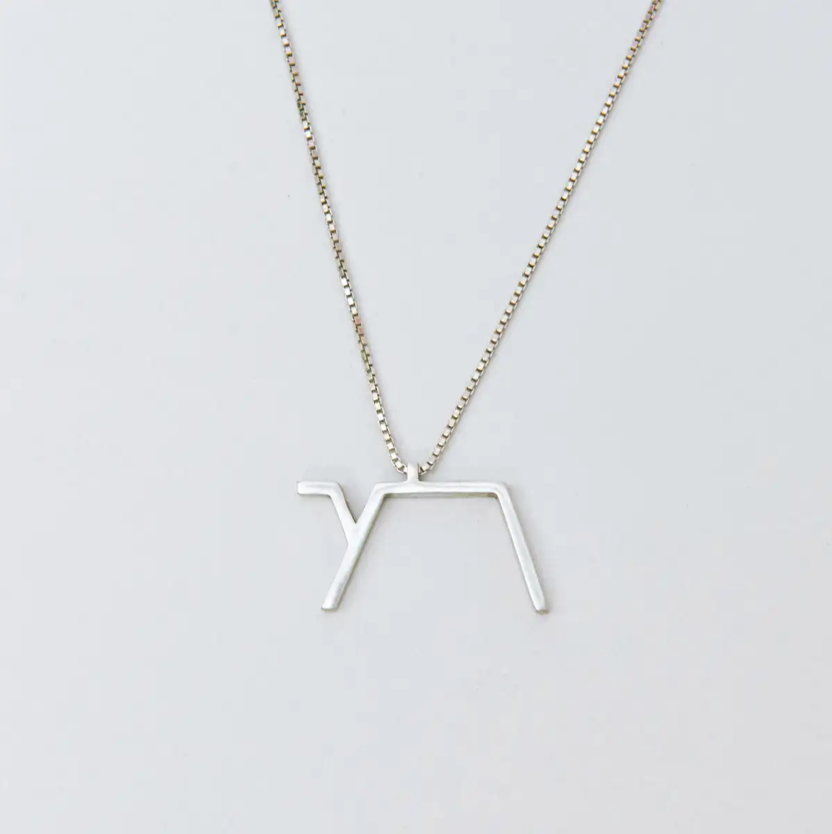 שרשרת כסף בעבודת יד עם תליון חי , עיצוב מינימליסטי וגיאומטרי המשלב את האותיות העבריות ‘חי’