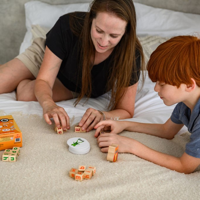כל משתתף מקבל 5 קוביות עץ בצבע אישי, כאשר כל פאה נושאת אות באנגלית. בתורכם, הפכו קלף עם מילה – ונסו להרכיב אותה כמה שיותר מהר!